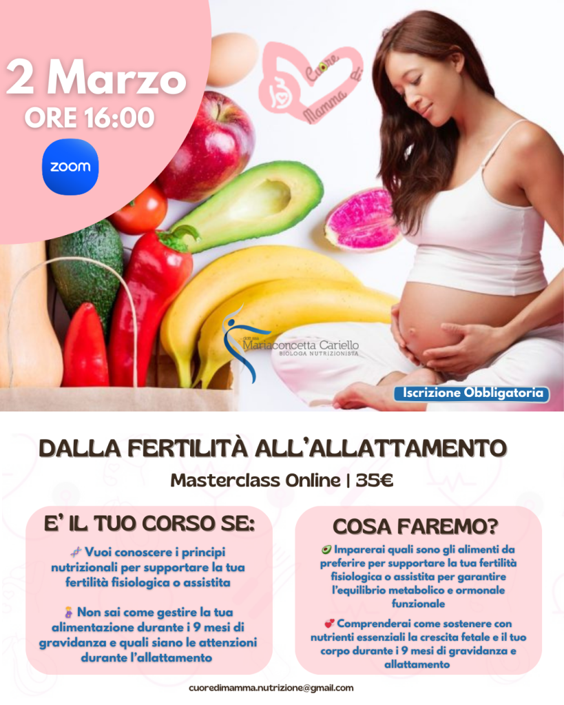 PERCORSO NUTRIZIONALE: FERTILITA’ E GRAVIDANZA (online e in studio)