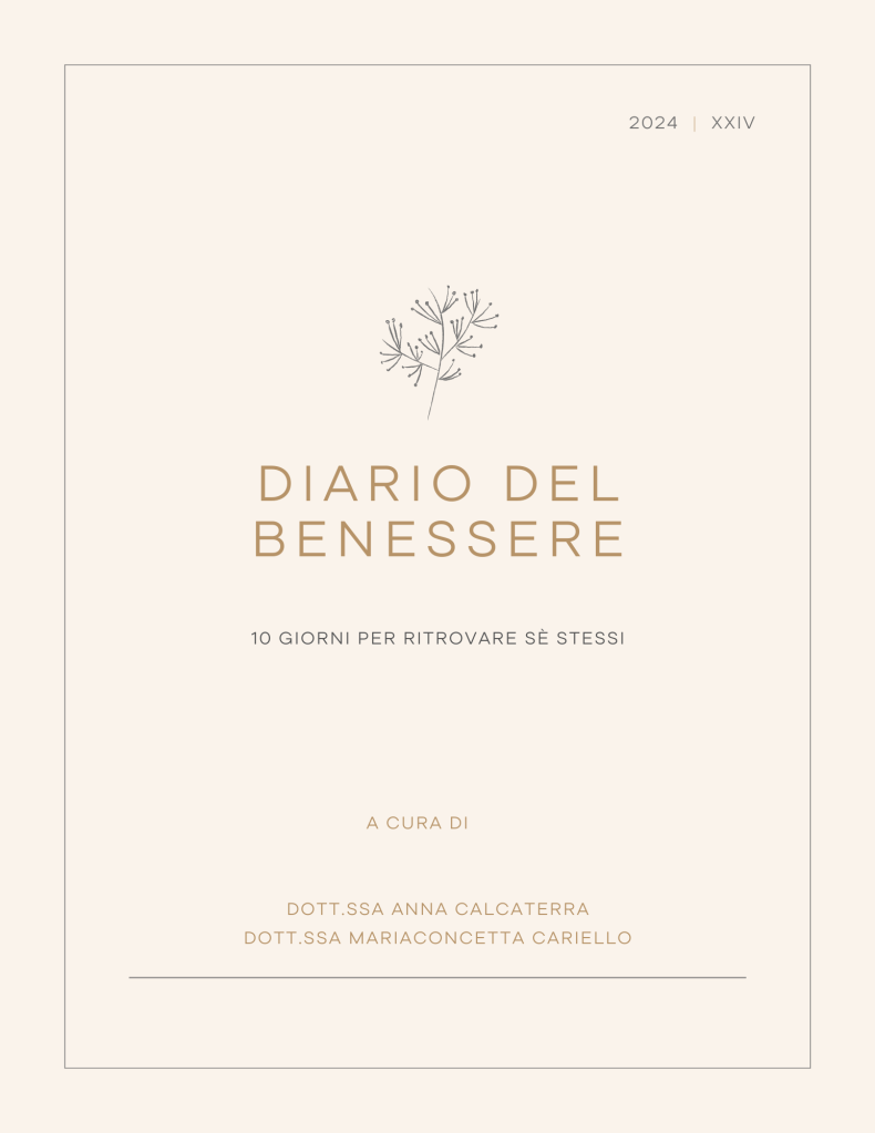 In collaborazione con la dott.ssa Anna Calcaterra, psicologa clinica abbiamo realizzato per te questo “Diario del Benessere”. Sarà un vero e proprio viaggio per riprendere contatto con te stesso/a, ricominciare ad ascoltare il tuo corpo, la tua mente e le tue emozioni per impegnarti a ripartire verso abitudini di vita migliori con più consapevolezza.
