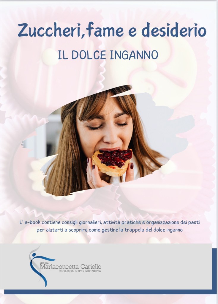 Quante volte hai detto: “ho sempre voglia di dolci”, “non riesco a resistere”, “ho una fame nervosa” ecco per ognuna di queste sensazioni ci sono condizioni metaboliche specifiche a scatenarle ! L’e-book ti guida nella comprensione di ognuna e ti aiuta a mettere in pratica strategie per combattere “il dolce inganno” . Troverai anche esempi di menu settimanali per guidarti nell’organizzazione della giornata e settimana alimentare senza il timore della “voglia di dolce”!