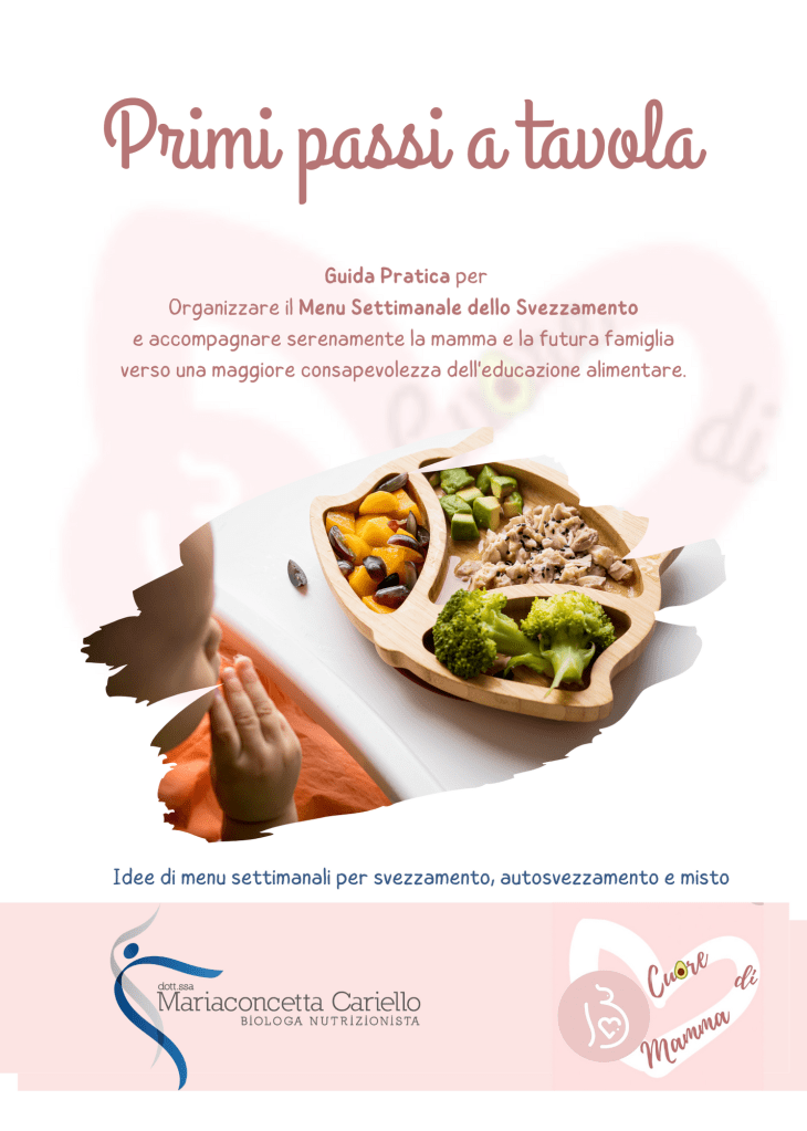 - Come proseguire lo svezzamento fino al primo anno di vita ed elaborare un menu settimanale