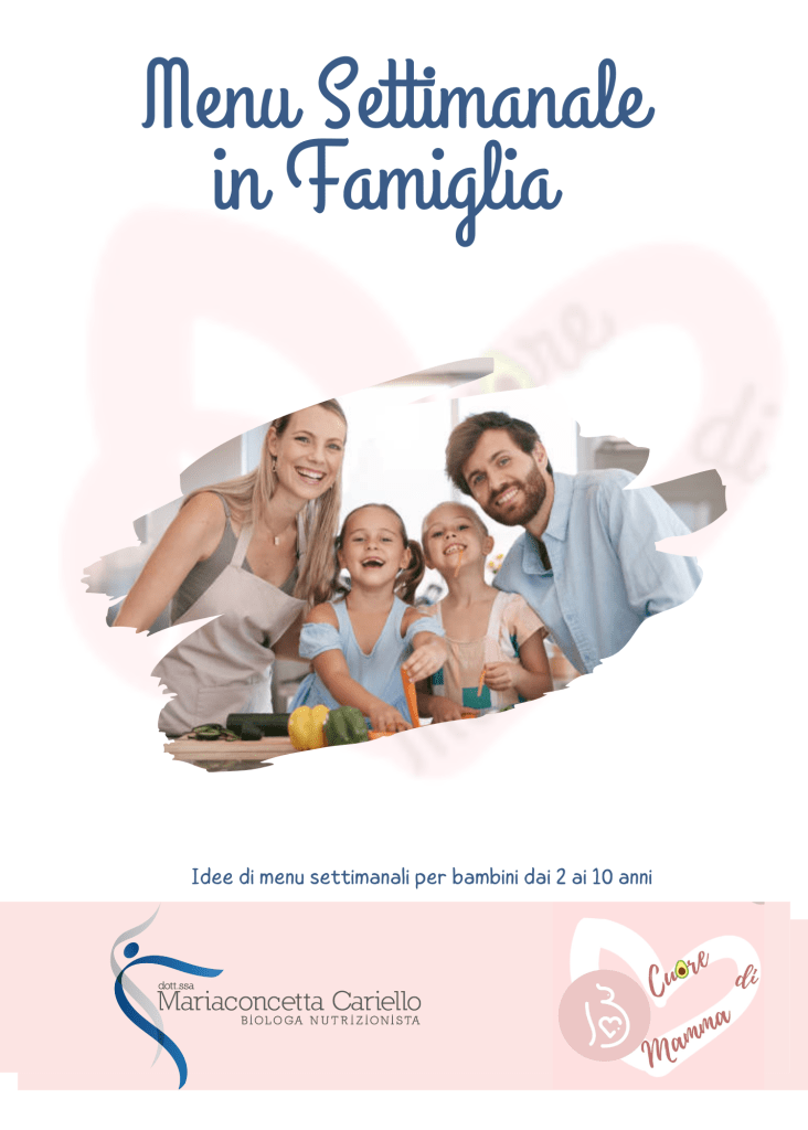 Guida Pratica per Organizzare il Menu Settimanale in famiglia! Ti permetterà di risparmiare tempo, di ottimizzare la gestione del budget e la riduzione dello stress quotidiano, sia per la possibilità delle varie scelte alimentari e sia poiché una volta elaborato è possibile fare una spesa mirata! Ma soprattutto ti permetterà di portare in tavola i principi di una dieta equilibrata per bambini: conoscere tutti i gruppi alimentari essenziali, le porzioni adatte e l’importanza della varietà.